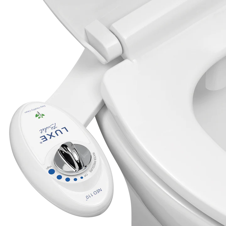 Description: The LUXE Bidet® NEO 110 is a fresh water mechanical bidet attachment, equipped with a single wash nozzle and a water pressure control knob that is simple to operate. During use, the nozzle extends below the guard gate and after use, the nozzle retracts into its housing.